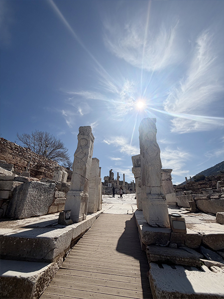 エフェソス視察の意義は、都市空間そのものが巨大な彫刻であるという事実を確認することにある。列柱道路、劇場、神殿、広場、門、住宅群の配置には、人体の骨格や筋膜のような秩序がある。都市は偶然に成立したのではなく、視線、動線、権威、儀礼、交易が精密に設計された結果であり、その意味でこれは“文明の解剖図”である。アルテミス神殿跡に立つことは、とりわけ女性性、豊穣、月的象徴、信仰装置としての建築を考える契機となり、The Davinci Art Project の中で進めている宇宙・人体・性差・聖性のテーマを再度深めるものとなる。