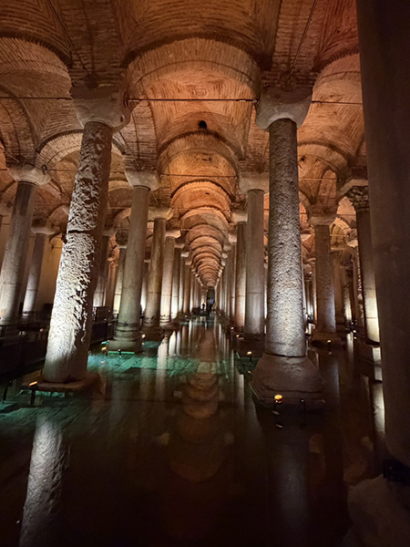 写真:地下宮殿(上記3点)帰国日は、移動そのものが思索の時間となる。トルコ各地で出会ったものは、古代都市の骨格、石灰棚の白、地下都市の闇、モスクと聖堂の巨大空間、旋回舞踏の精神性、火山地形の有機曲線、海峡都市の重層性であった。これらはバラバラな印象ではなく、すべてが 「人類はいかに空間を作り、空間に作り返されてきたか」 という一つの主題に収斂している。