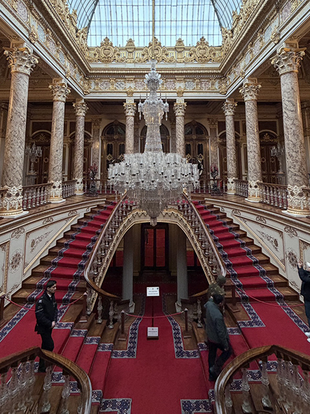 写真:ドルマバフチェ宮殿最終実質視察日は、旧市街ではなく新市街を歩くことで、オスマン帝国末期から近代トルコへの移行を見つめる日である。ドルマバフチェ宮殿は、ボスポラス沿いに建つ巨大宮殿で、19世紀オスマン宮廷が西欧建築の要素を積極的に取り入れた象徴的存在として知られる。複数の案内情報でも、その歴史的重要性と宮殿としての規模が示されている。